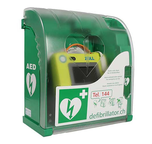 LightCase 200 Wandkasten zur Aussenmontage mit optischem und akustischem Alarm, Nachtbeleuchtung, Heizung und Netzteil, speziell für die sichere Aufbewahrung von AED Defibrillatoren im Freien.