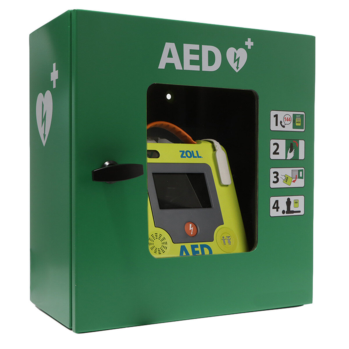 SmartCase Wandkasten zur Aussenmontage mit optischem und akustischem Alarm, Ventilator zur Kühlung, Heizung bis -20°C, Nachtbeleuchtung und 24 V Netzteil aus pulverbeschichtetem Stahl, Aussenmasse ca. 44 x 44 x 24 cm, geeignet für alle gängigen AED-Typen.