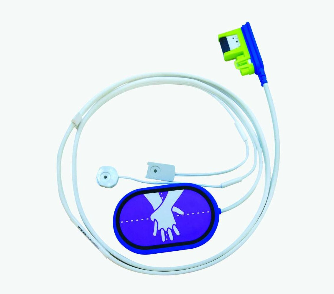 Trainings-Kompressionssensor mit Verkabelung zu CPR Uni-padz Trainingselektrode für ZOLL AED 3 Trainer, Steckertyp Green-Connector, zur Messung und Rückmeldung der Kompression.